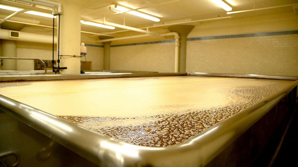 Moromi fermentation starts here where one week old koji is mixed with the salt and water solution